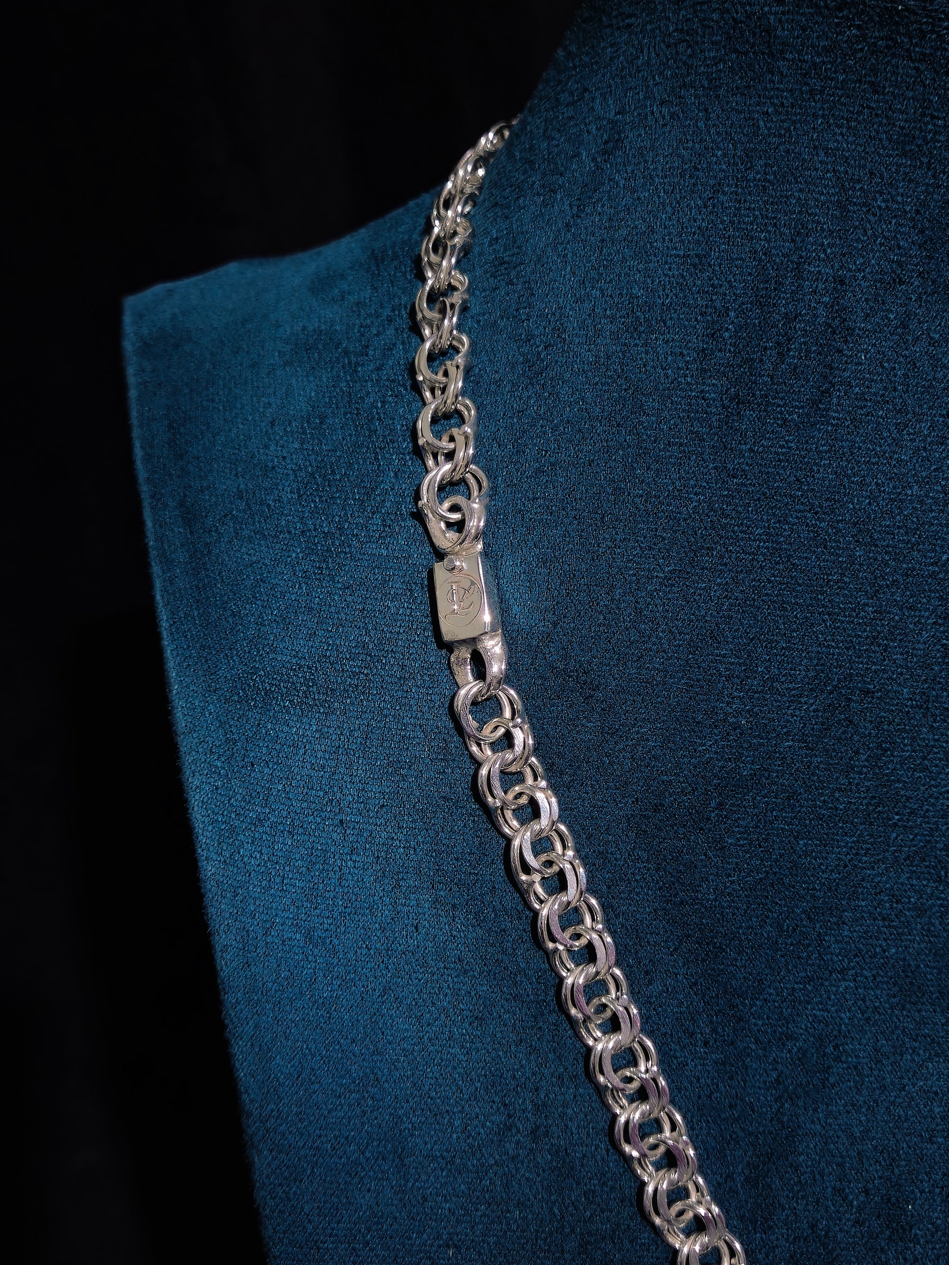 Förhöj din smyckessamling med ett handgjort Bismarck Halsband i sterlingsilver – en kombination av modern elegans, mästerligt hantverk och tidlös charm. Beställ idag och lyft din stil med dess sofistikerade design.