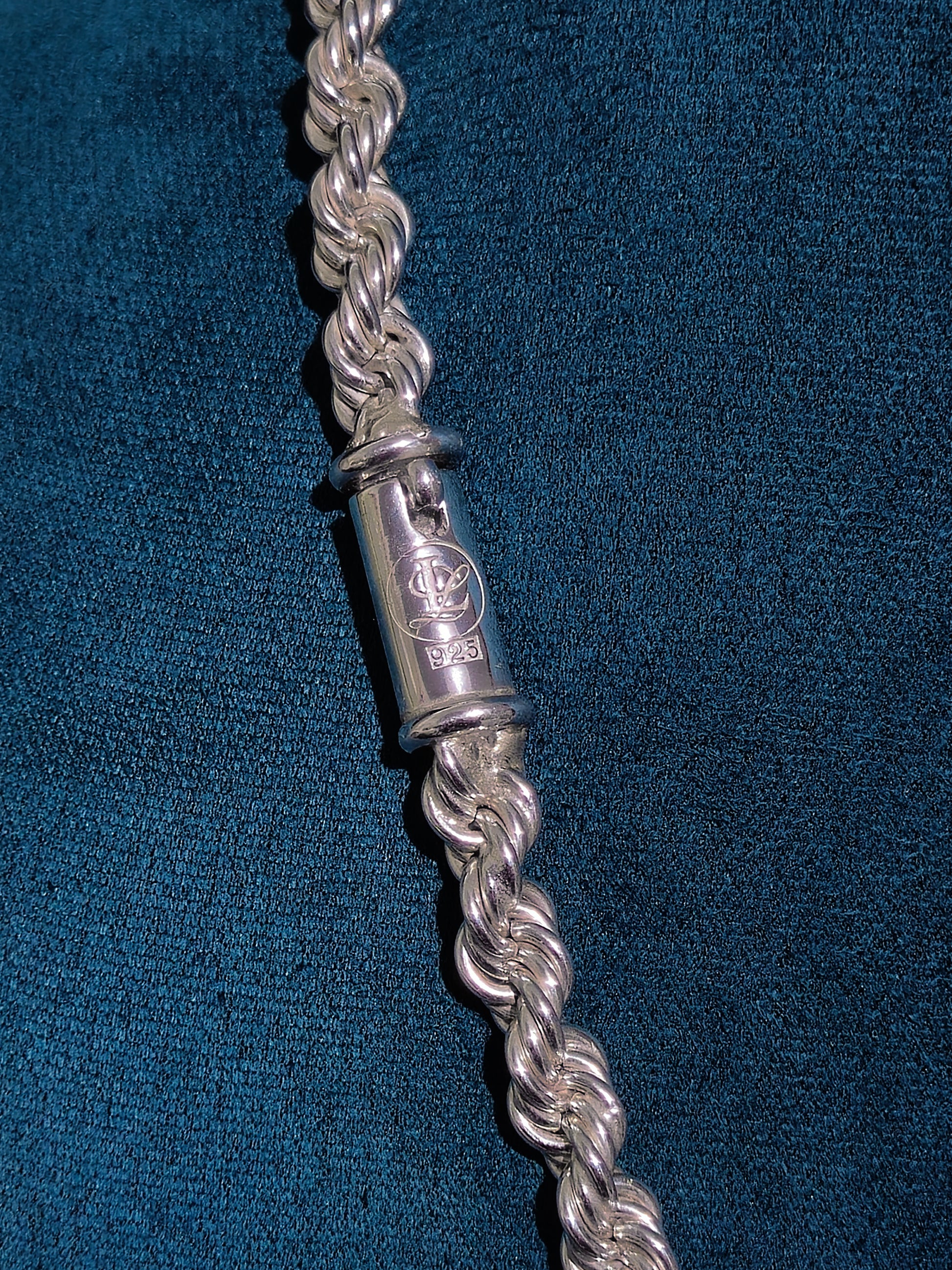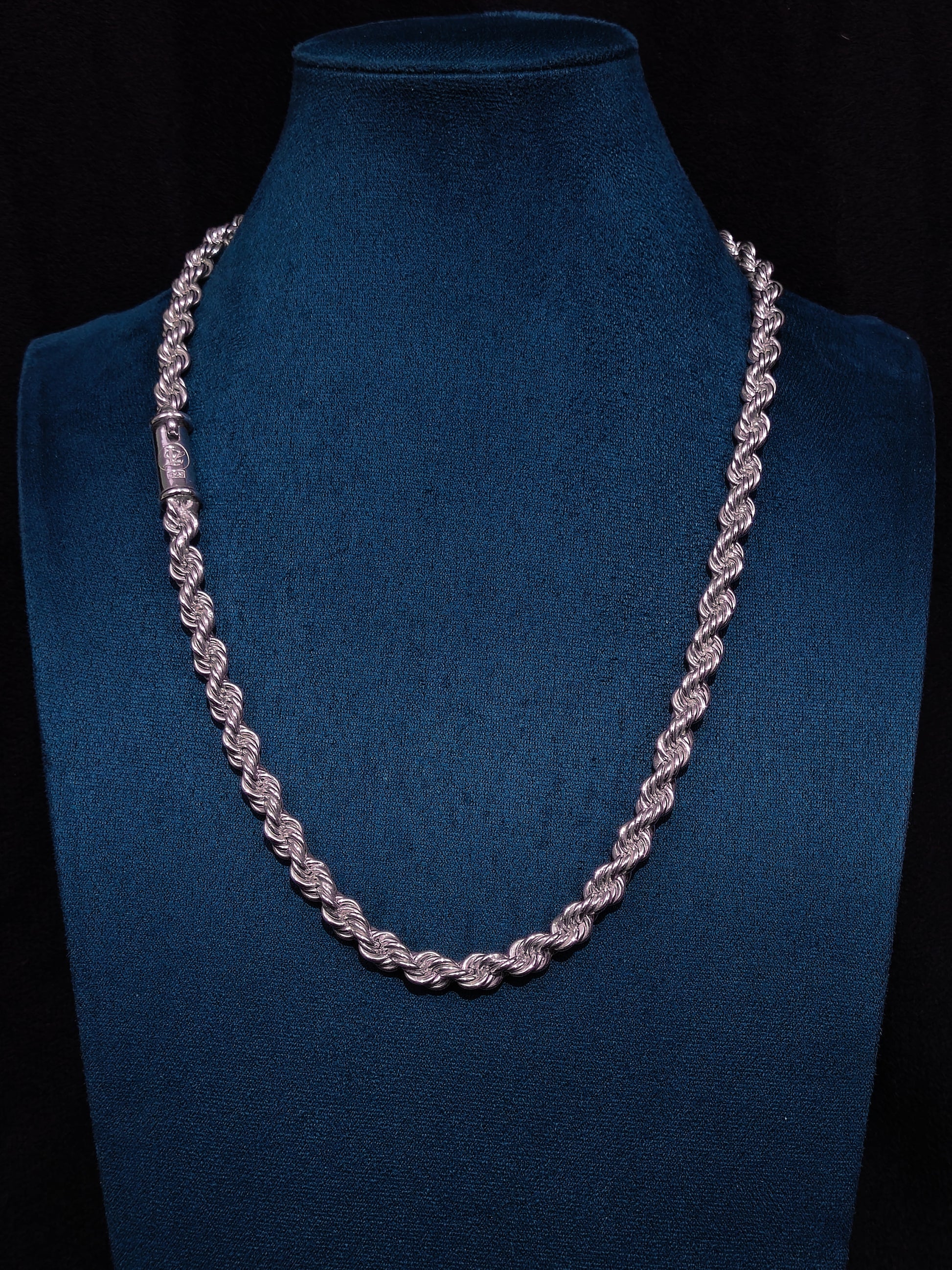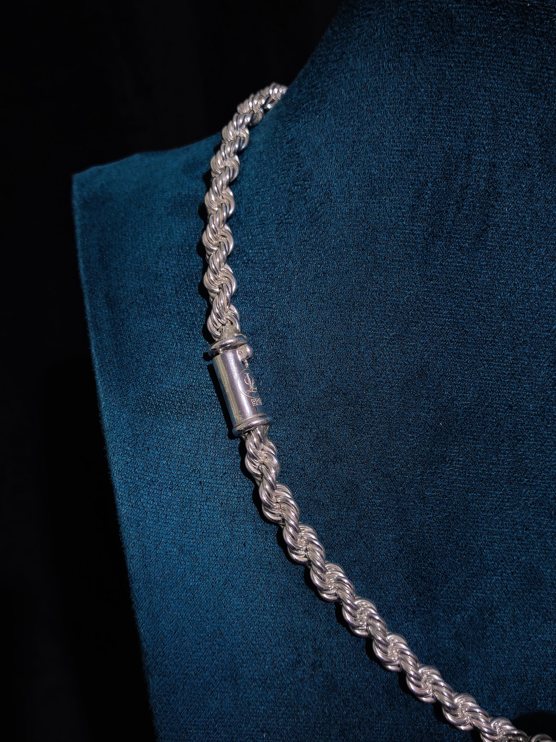Höj din stil med denna exklusiva handgjorda Cordell i sterlingsilver. Varje kedja skapas med stor noggrannhet av mig. en skicklig hantverkare och har ett vackert tvinnat mönster som utstrålar lyx och elegans. De sammanflätade silvertrådarna skapar en unik struktur som fångar ljuset på ett enastående sätt, vilket gör den till en perfekt accessoar för alla tillfällen.