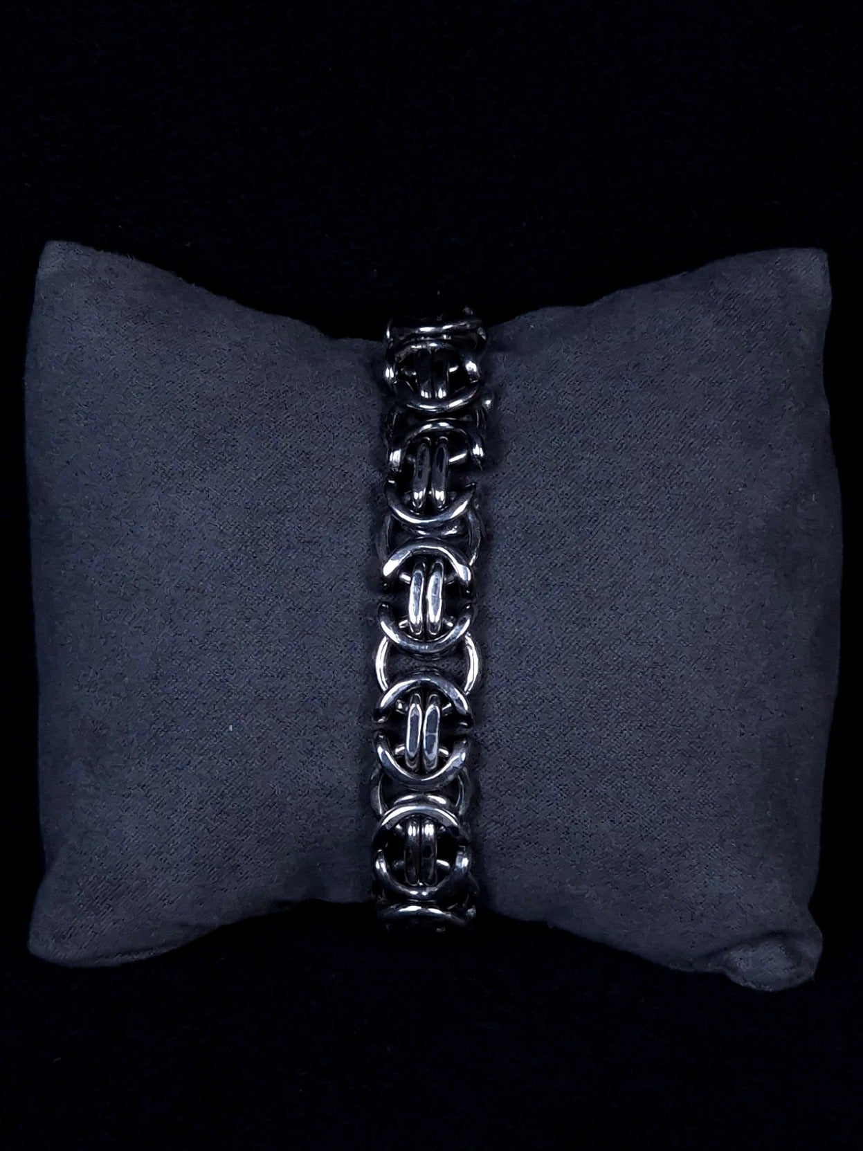 Perfekt för både vardagsbruk och speciella tillfällen – detta oxiderade Flat Byzantine-armband är det självklara valet för dig som söker en kraftfull men elegant accessoar.